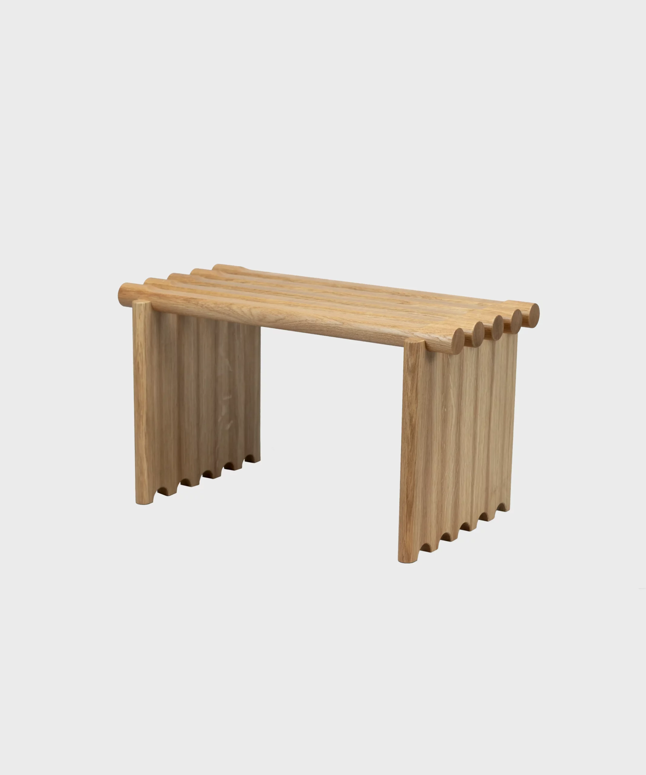 Muotoilija-puuseppä Ville Auvisen suunnitteleman Domino-penkki kutsuu luomaan omannäköisiä kokonaisuuksia erivärisiä ja -kokoisia elementtejä yhdistelemällä. Yksinään Domino toimii monikäyttöisenä penkkinä tai laskutasona, ja elementtejä pinoamalla siitä saa luotua loputtomasti uudenlaisia yhdistelmiä.