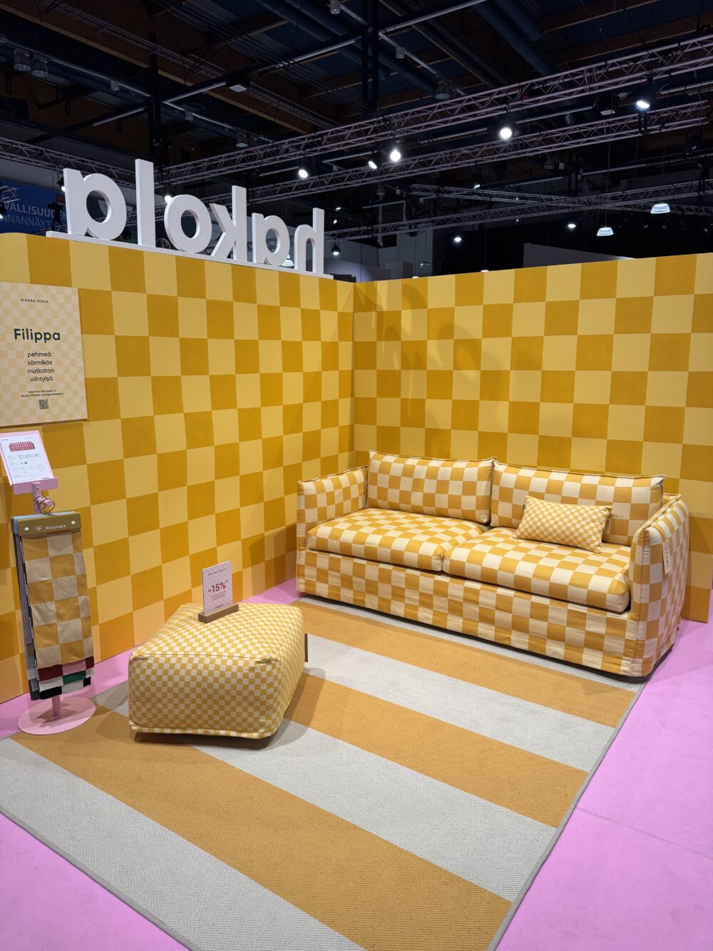 Haluamme toimia vastuullisesti, ja käytämme kankaat niin että niistä syntyy mahdollisimman vähän leikkuujätettä. Siksi ruutujen asemointi tuotteessa saattaa hieman poiketa tuotekuvasta. Kuitenkin esimerkiksi tyynyjen ja rungon päällisten ruudutus on aina linjassa toistensa kanssa.
