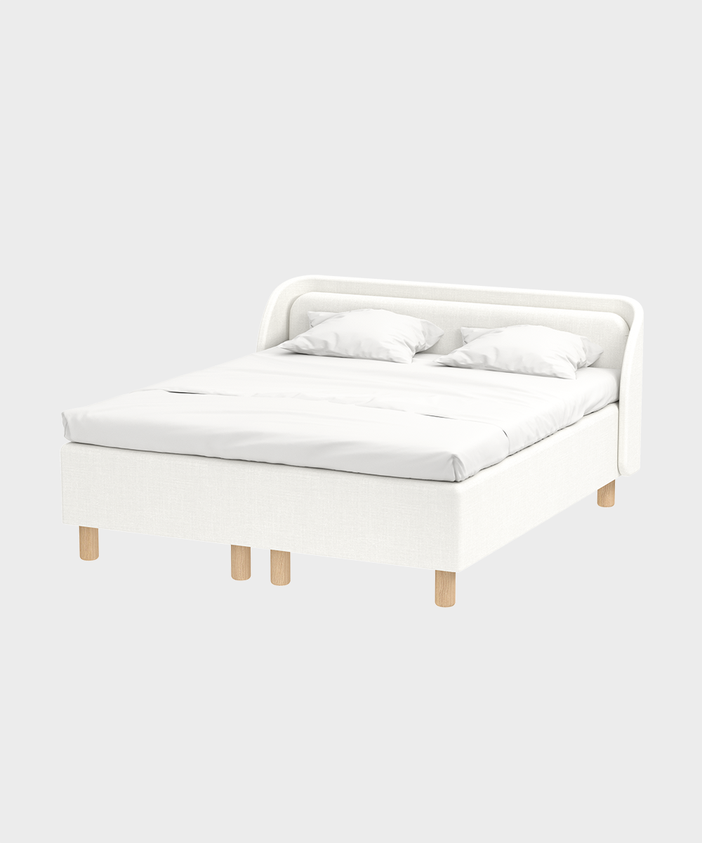 Nest-sängyn kaareva pääty on kuin syli, johon on ihana käpertyä pitkän päivän päätteeksi lukemaan kirjaa tai katsomaan suosikkisarjaa. Lisää mukavuutta tuo pehmeä tyyny.